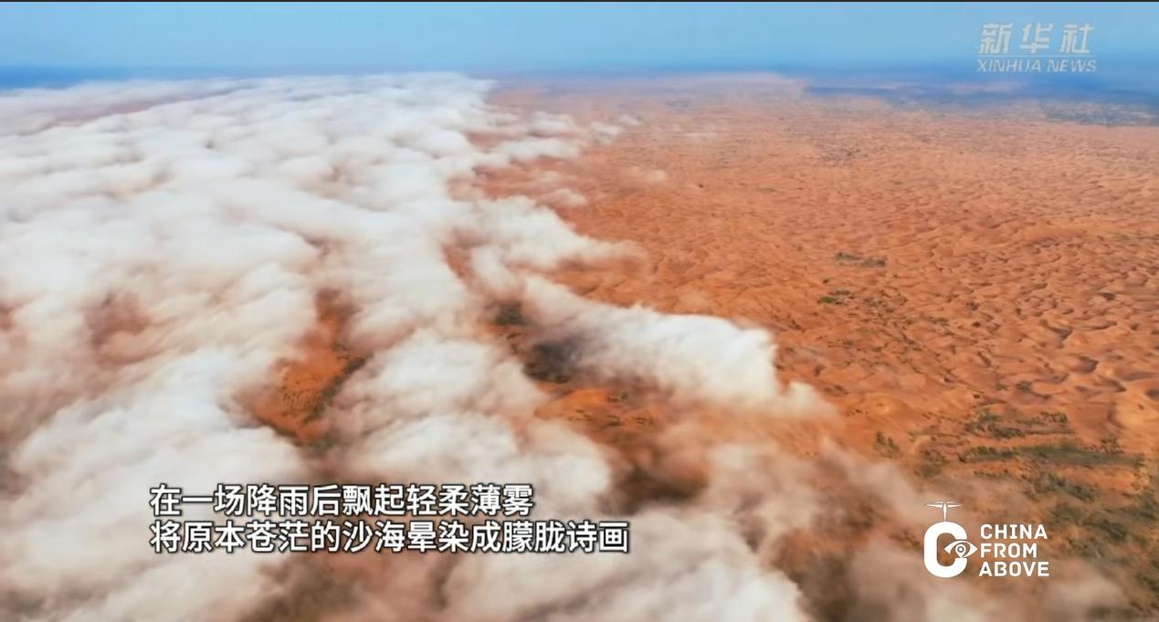 瞰中国|大漠云海,这是一个非常富有诗意和视觉冲击力的主题。它结合了中国的广袤大地和壮丽的自然景观,特别是沙漠和云彩的对比与交融,展现了中国自然风光的多样性和魅力。