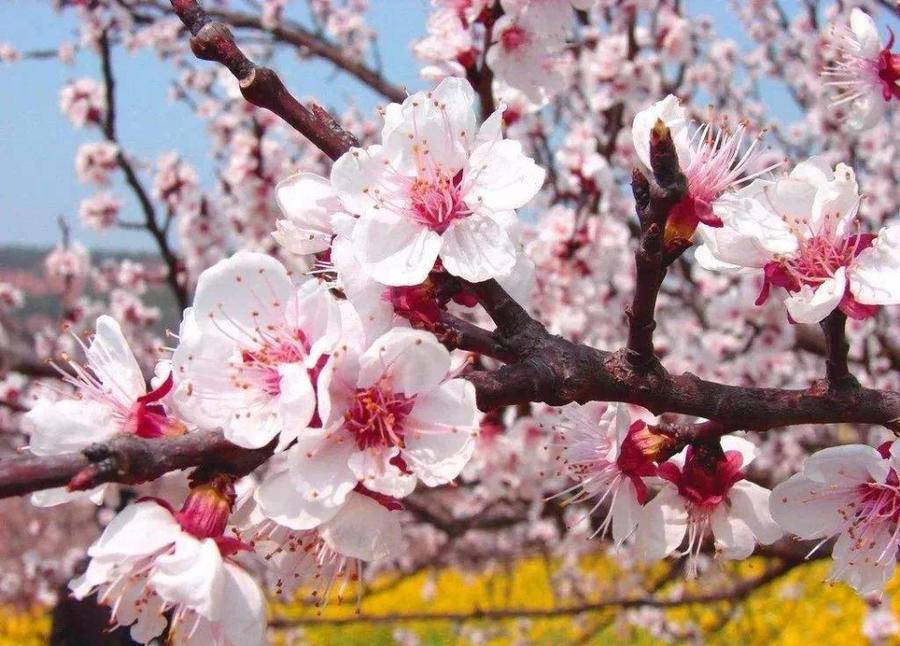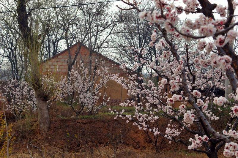 北方的杏花,是一种豪放大气体现。不拘土壤的丰腴贫瘠,占得方寸之地就能落地生根,山岭间,沟谷旁都是它们栖息的好地方。自甘寂寞地站在那里,不求名不求贵,自自然然朴朴实实地完成着上苍给予它的那一分职能。这与我家乡亲人那种勤劳质朴本分的天性,十分相似。杏花伫立在春风轻拂的枝头,卓尔不凡,凌寒不惧,将生命之源的坚韧和铮铮铁骨的豪情写满枝枝丫丫,它分明是等待了漫长的时光,才将积蓄已久的激情迸发出来,呈现出一派热烈欢快的勃勃生机。杏花虽不如桃花那般娇柔妩媚、丰姿绰约,却宛若一位洒脱飘逸、亭亭玉立的妙龄少女,以它素洁淡雅、清纯秀丽的风姿,让人赞叹赏识、倾情怜惜。它在大自然斑斓的舞台上粉亮登场,时尚般地惊艳,诗意般地绚丽,给春天这一望无际的华丽锦绣增添了一抹素雅之美。唐朝诗人王涯的《春游曲》专写杏花,“万树江边杏,新开一夜风。满园深浅色,照在绿波中。”在栽有万棵杏树的江边园林,一夜春风催花开,万树颜色深浅不同的杏花照在一江碧滢滢的春水之中,杏花浸染着江水,江水浸润着杏花,互相映衬,相得益彰,这是何等美妙的“春江杏花图”。宋代叶绍翁“春色满园关不住,一枝红杏出墙来”、宋祁所写“红杏枝头春意闹”等,杏花似乎在呈现一种生命的姿态,眼前绽放的杏花,在经过夏暑的煎熬,秋雨的洗礼,冬雪的浸淫,才绽放的如此绚丽,将积蓄已久的激情迸发出来。在我看来,桃花太艳,梨花又太冷了,杏花才像从乡野走出的美人,清新靓丽中透着一股质朴的气息,略施粉黛,浑然天成。多少文人墨客,咏谈杏花,借杏赞美自然,抒发对自然的热爱,寓杏为兴,寄托田园兴旺,和平美好的愿望。