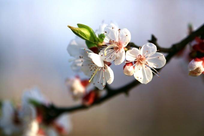 早春,料峭萧瑟,土地尚未睁开惺忪的睡眼,老杏树在温暖的春光下复苏了。经过一冬的蛰伏孕育,干瘪苍劲的枝条泛出年轻的青色,悄悄地鼓胀,饱满,脆弱的枝节承受不住它蓬勃的力量,爆裂出来一个个小小的花苞,像一个个古代仕女,俏立枝头,在清冽的空气里,摇曳着无尽的风情。当你怀揣着惊喜等待绽放时,它却拿捏着矜持,含着羞涩,再也没有张开笑脸的意思。终于等的烦躁了,你离去了,它在某个安静的夜晚,悄悄地伸出一个个小花瓣,见没人注意,便嬉笑打闹着全都争先恐后地探出头来,你碰我我挤你闹作一团。老杏树花朵一旦展开,霎时美成一片,一如云霞浮岚。微风拂过,满村清香,似是从天外飘来的一股仙气。那清香,似有似无,绝无献媚夺魂之势,似一位纯真的乡野少女,心中溢荡的是自然之漪,本真之风。在春风中独立芬芳,野气十足而充满灵秀,不仅装点出村庄第一道春的风景线,也划分出村民生活的冬与春,可以状为“占尽春光第一枝”。