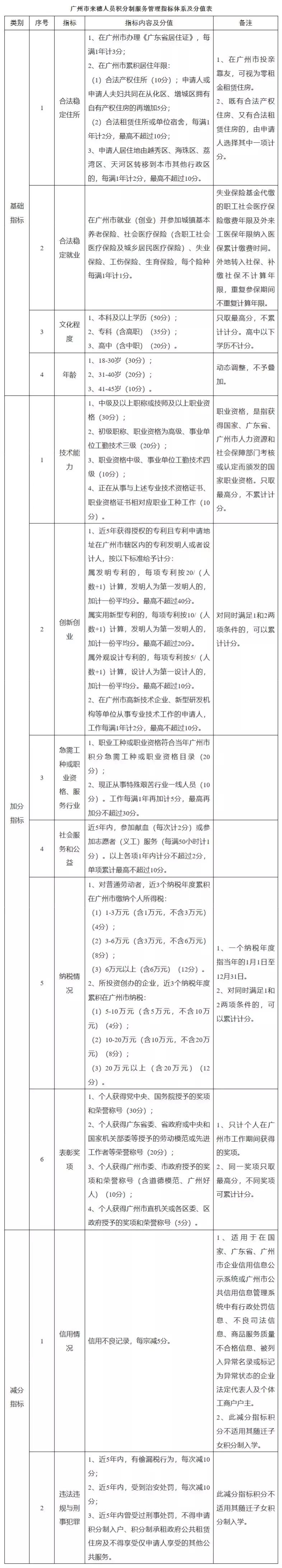 积分制,是指通过设置积分指标体系,对持有在本市办理且在有效期内《广东省居住证》的来穗人员,根据其个人情况和实际贡献进行积分,并对积分申报、调整、使用等进行服务管理。