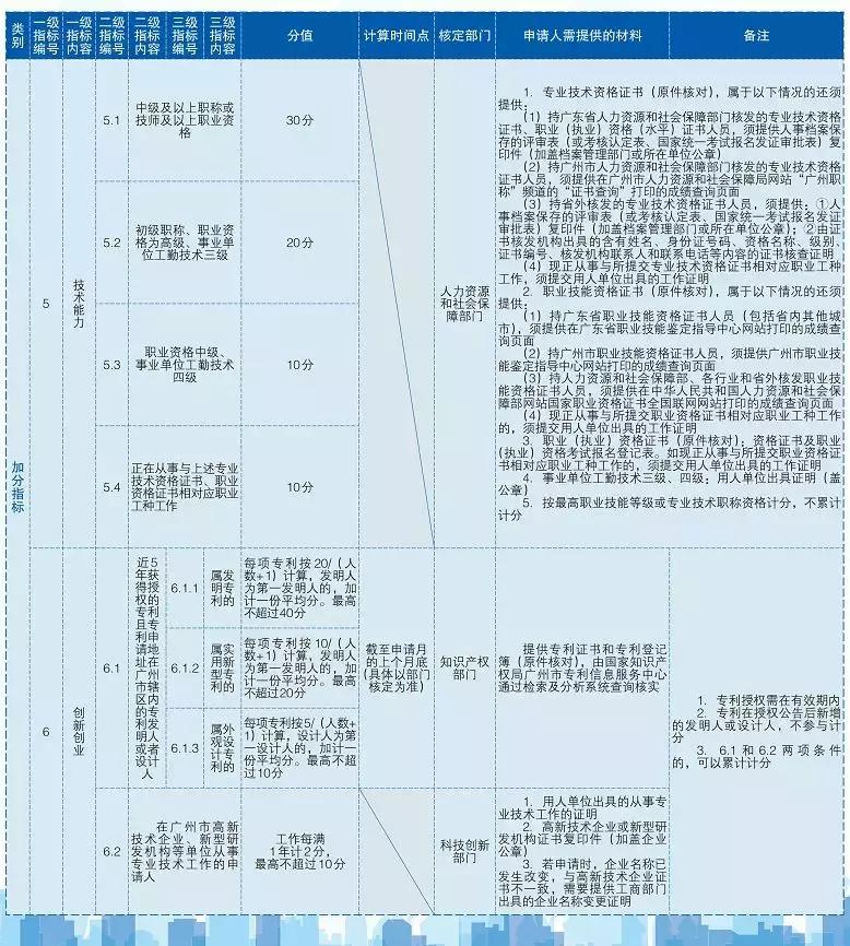 由技术能力、创新创业、特定职业与服务、社会服务和公益、纳税情况、表彰奖励等6项组成;