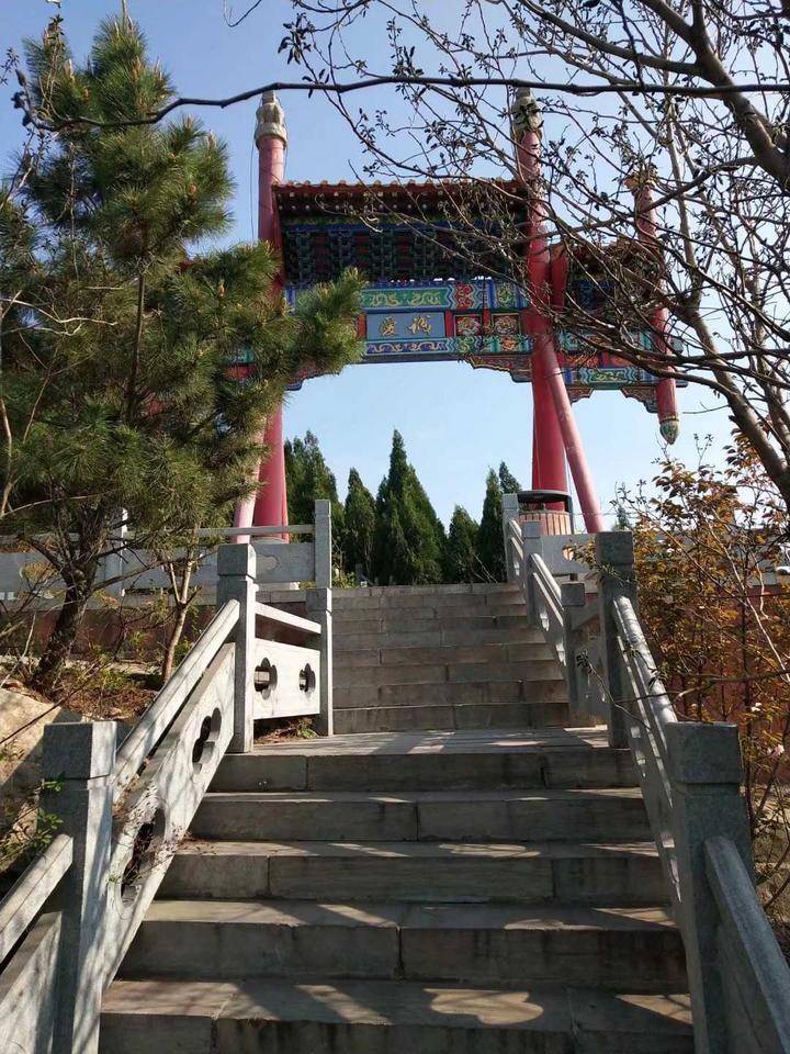 再向前攀登,但见石阶两旁长满了茂密的松柏,仿佛一把把大伞遮住了春天的阳光。绿荫凉台 ,松香拂面,想象着要是在炎热的夏天,所有树木蓬勃茂密,凉风习习,背上一壶清茶,约三五好友,依山而坐,对弈,读书,谈天论地,真是乘凉避暑的好地方。半山腰 ,一棵高大挺拔的柏树突然立在了灰色石阶的中央。那人双手扶树大口喘着粗气,仰头望着蔚蓝的天空,感叹修石阶的工匠师傅,善念存缘,没有去掉路中间这棵挡路的树。给爬山的人带来了休憩歇脚的方便。扶树静坐 ,置身山腰,想象着初春那些耐不住性子的植物,破土,发芽,生长,抽穗,该是一件多么美好的事情啊!