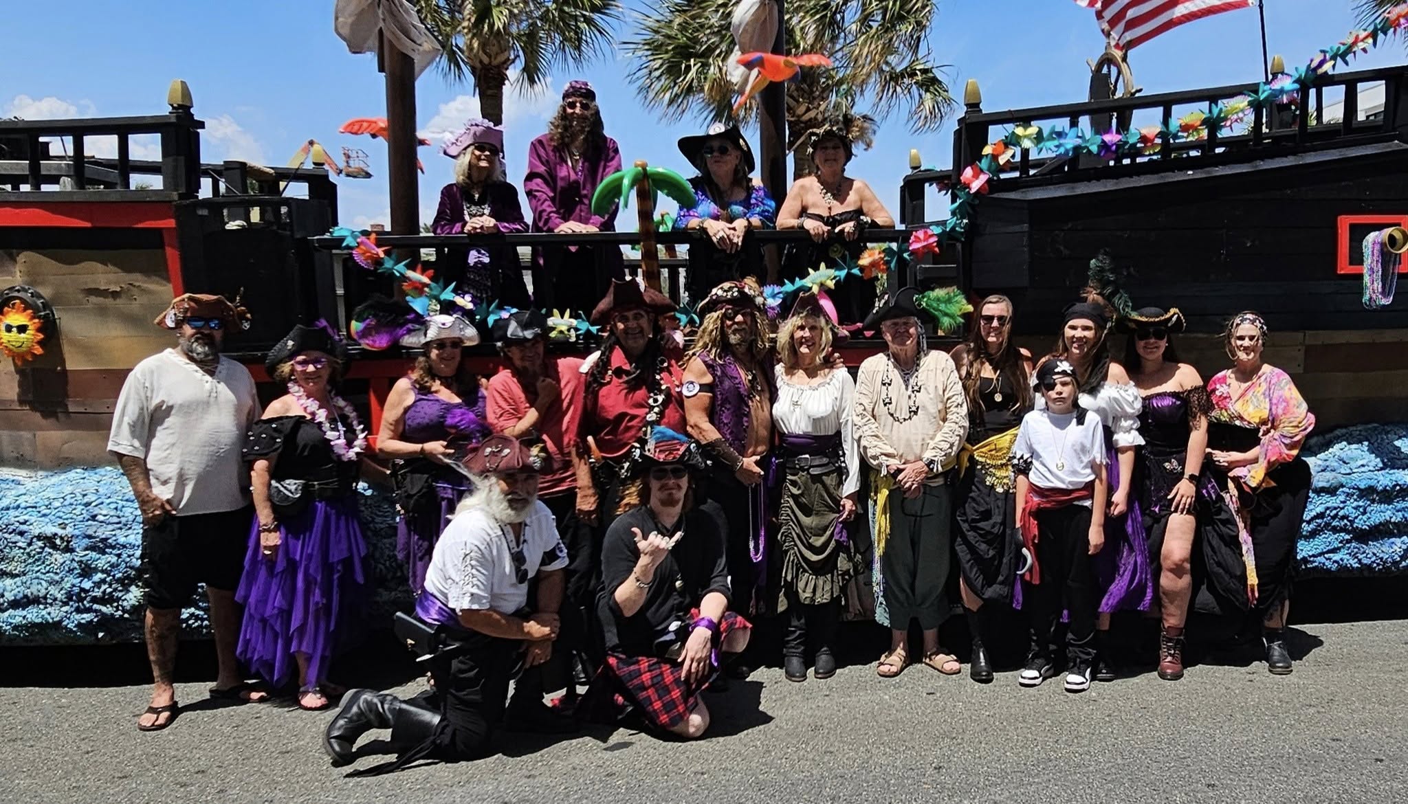 这个海盗俱乐部是1973年成立的,成员是一群热爱海盗的人,穿着打扮也和海盗一样,和现在的角色扮演差不多,海盗雕像是该俱乐部的吉祥物。
