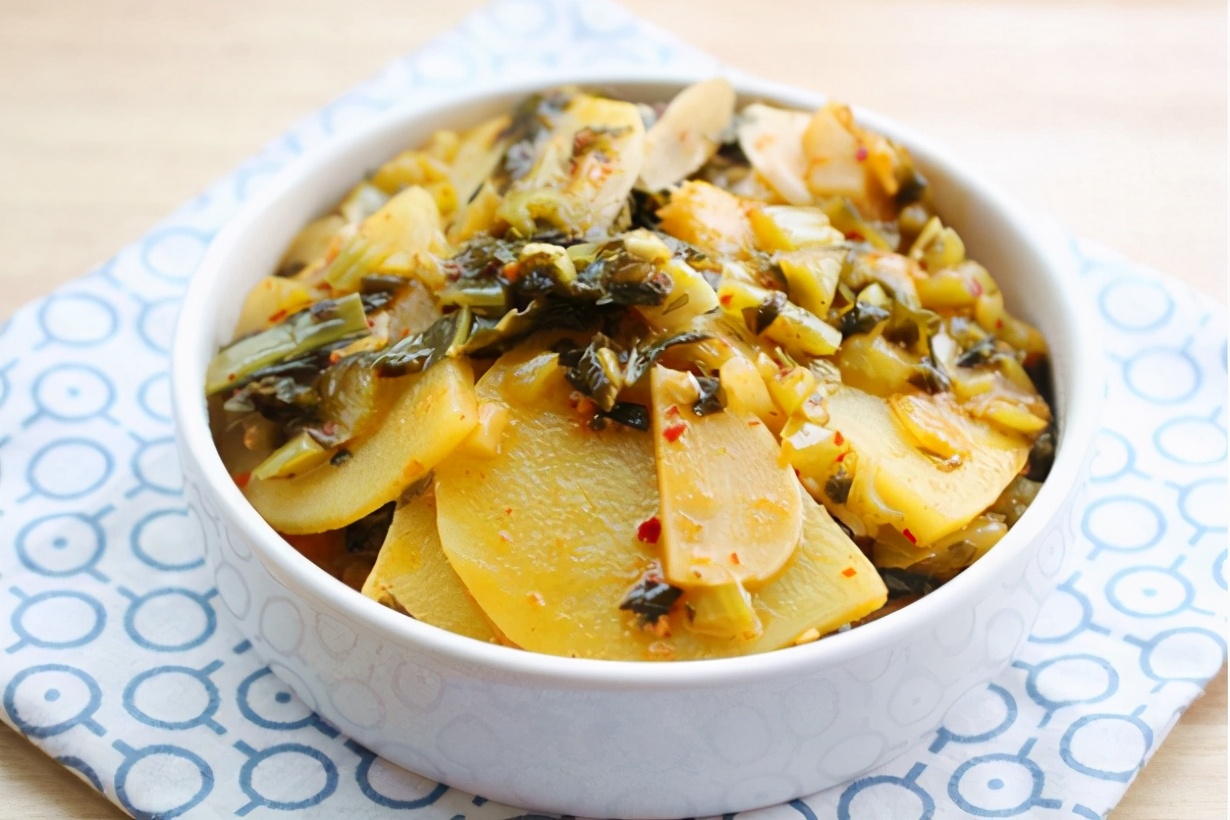 食材:土豆600g、酸菜120g、植物油、盐、生姜、辣椒