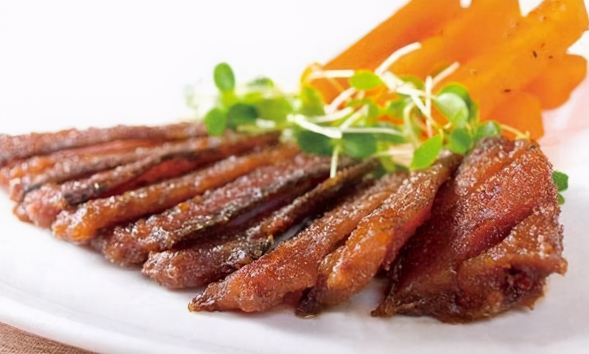 材料:牛肉、胡萝卜、香菜、辣椒酱、料酒、麻油