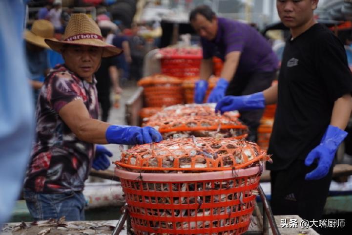 梭子蟹的个头大,大的一只就有半斤重,肉比较多,比吃大闸蟹更过瘾。