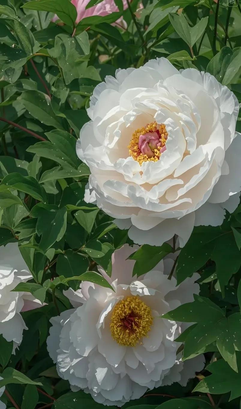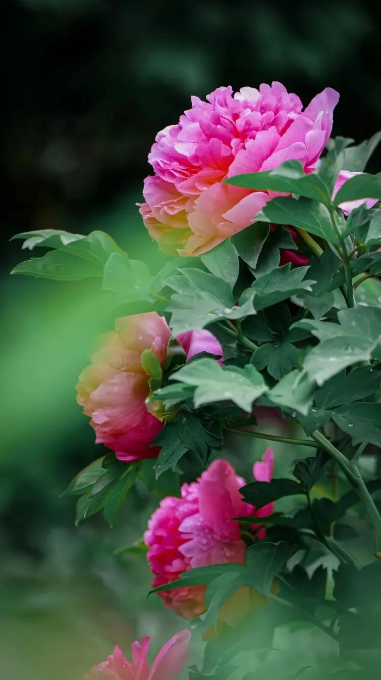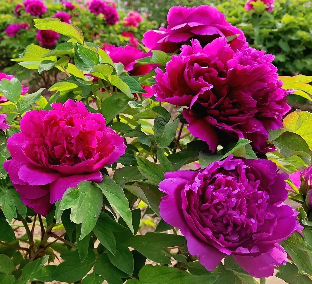 1. "外貌华丽:" 牡丹花花朵硕大饱满,色彩极为丰富,有红、粉、白、黄、紫、复色等,花瓣层层叠叠,姿态雍容华贵,盛开时极为壮观。