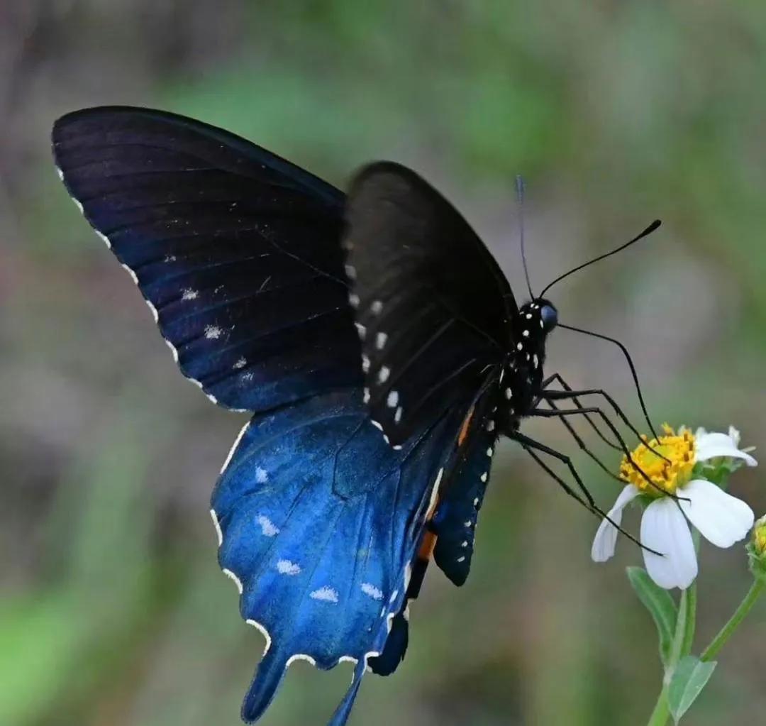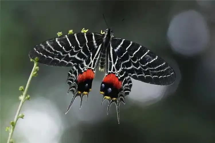 (2)宽尾凤蝶最突出的特点在于其后翅尾突宽阔,并贯穿两条翅脉,这种独特的翅脉结构在凤蝶中极为罕见。
