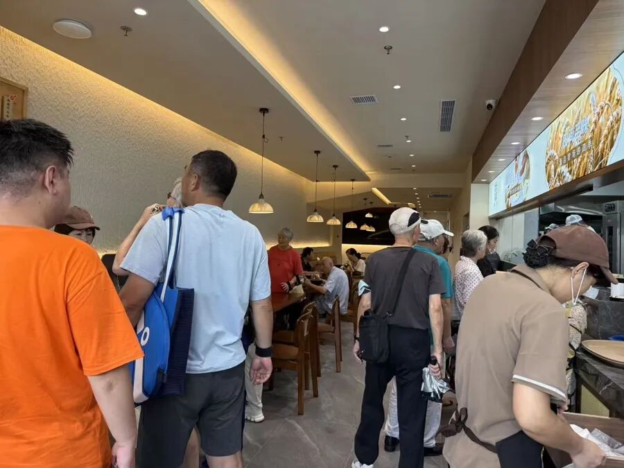 昨天上午11时,面点铺老板朱青青站在门口查看开店情况,当天面点全场五折,顾客络绎不绝。“别被我们的名字吓到啊,一个青菜包2.5元,一碗阳春面8元,在这个地段还是很实惠的。”她笑着指指店招,“圃言”这个名字确实很难想到是一家面点铺。