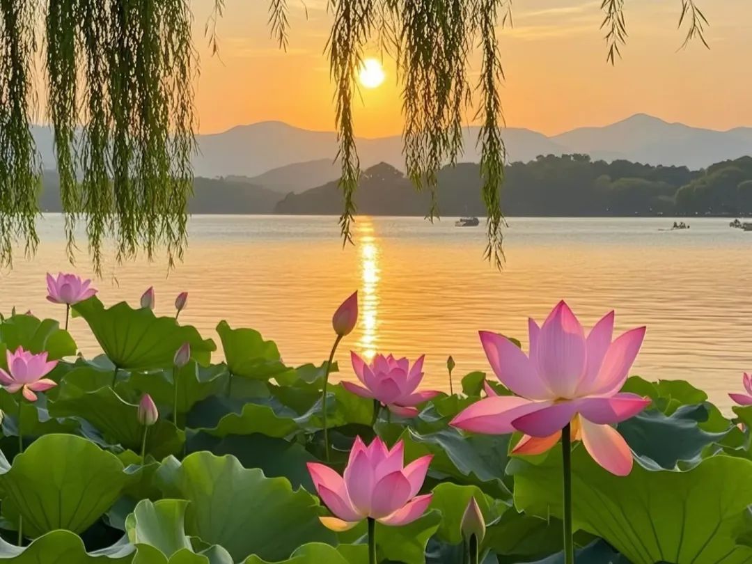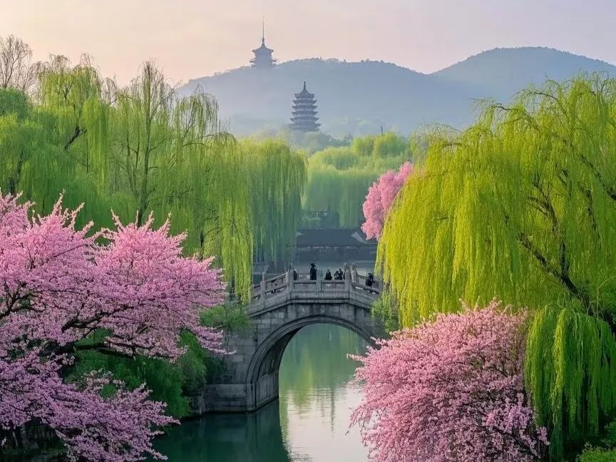 - “西湖十景”:形成于南宋时期,基本围绕西湖分布,有的就位于湖上,其分别为苏堤春晓、曲院风荷、平湖秋月、断桥残雪、花港观鱼、柳浪闻莺、三潭印月、双峰插云、雷峰夕照、南屏晚钟。