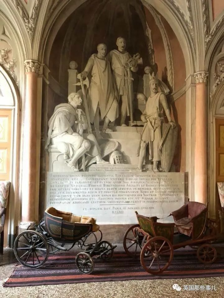 门厅正中央是资助城堡建设的Sannazzaro家4位骑士的雕塑…