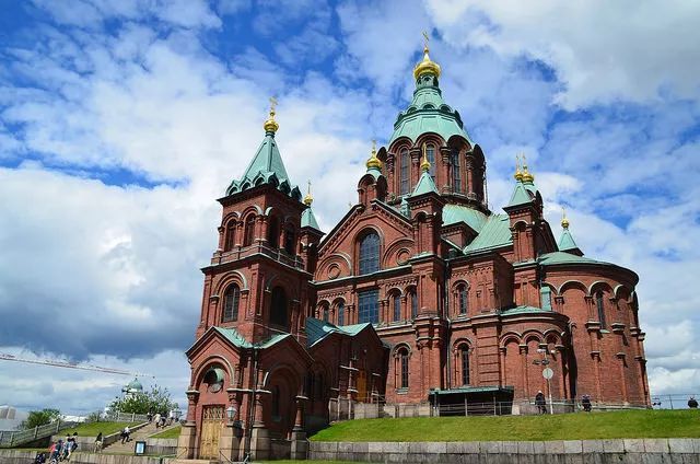 圣母安息大教堂(Uspenskin katedraali / Uspenskijkatedralen),即“圣母安息主教座堂”,音译名为“乌斯别斯基教堂”、“乌斯佩斯基大教堂”,坐落于卡达亚诺伽半岛的山坡上,是芬兰东正教会赫尔辛基教区的主教座堂,属东正教,尊崇“圣母安息”。教堂建于1862-1868年,背面有纪念俄国沙皇亚历山大二世的牌匾,内部的圣幛引人注目。