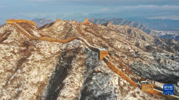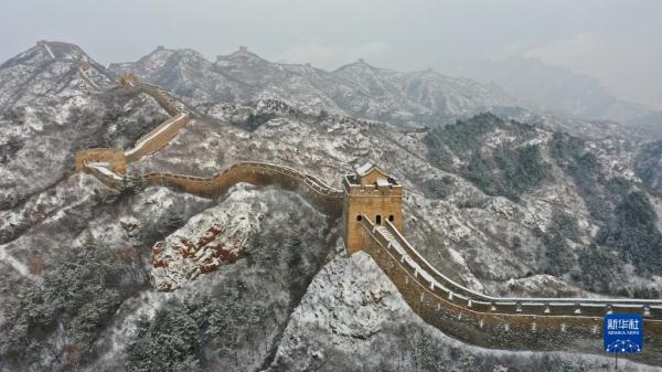 这是2月18日拍摄的位于河北省承德市滦平县的金山岭长城雪景(无人机照片)。