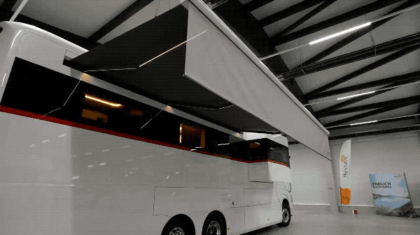 也可控制一个巨大的遮阳篷,宽度为6米,深度为2米,并自带LED灯,方便露营时使用。