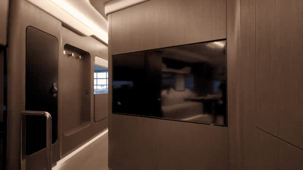 两侧配有宽大的玻璃窗,也可自动加热。并且,还搭配自动升降的窗帘。