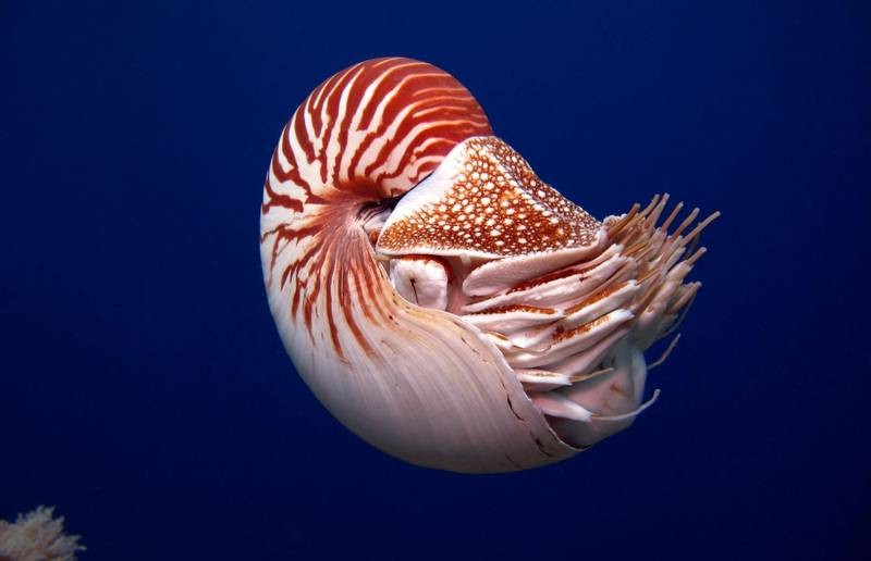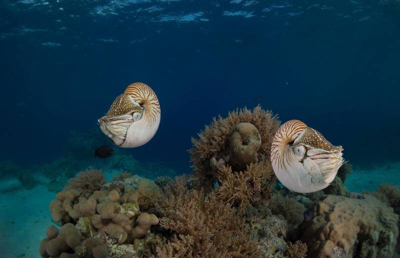 其中最奇特也最迷人的是鹦鹉螺——一种优雅的软体动物,与鱿鱼和章鱼是远亲。
