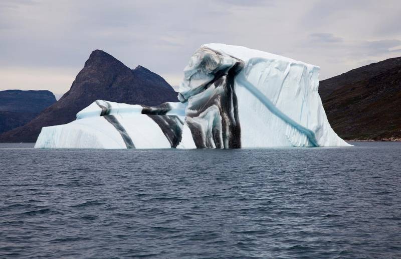 北大西洋,条纹冰山:裂缝进水冻结形成独特花纹