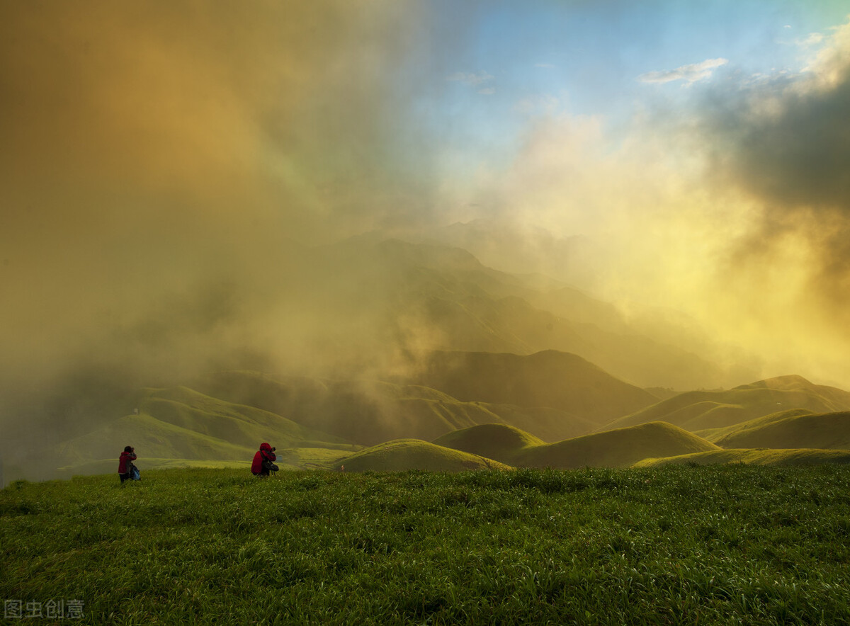 武功山的高山草甸是武功山最美的地方,面积之大在世界同纬度名山中都是绝无仅有的,10万亩草甸从发云界直至金顶高峰,连绵二十余公里,仿佛云中草原,春夏满目翠绿,到了秋天则金灿灿一片,宛若人间仙境一般。武功山的高山草甸在中国的户外徒步界小有名气,是天然的帐篷营地,在山上宿营,可以早上看日出,晚上看满天繁星,是人生难得的体验。