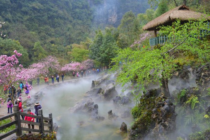 酉阳桃花源位于酉阳土家族苗族自治县,是世外桃源文化主题公园,浓缩了武陵山区最美的原生态自然田园风光,步入其中仿佛置身于陶渊明笔下的《桃花源记》场景。