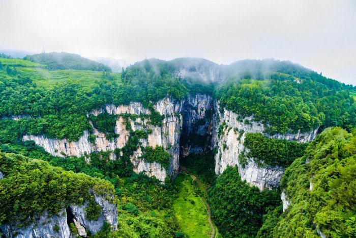 云阳龙缸地处云阳县东南清水土家族乡境内,是集天坑、峡谷、溶洞、高山草场、森林、土家风情于一体的风景区。龙缸天坑深约三百多米,坑壁形态罕见,被户外爱好者誉为重庆版的“小华山”。