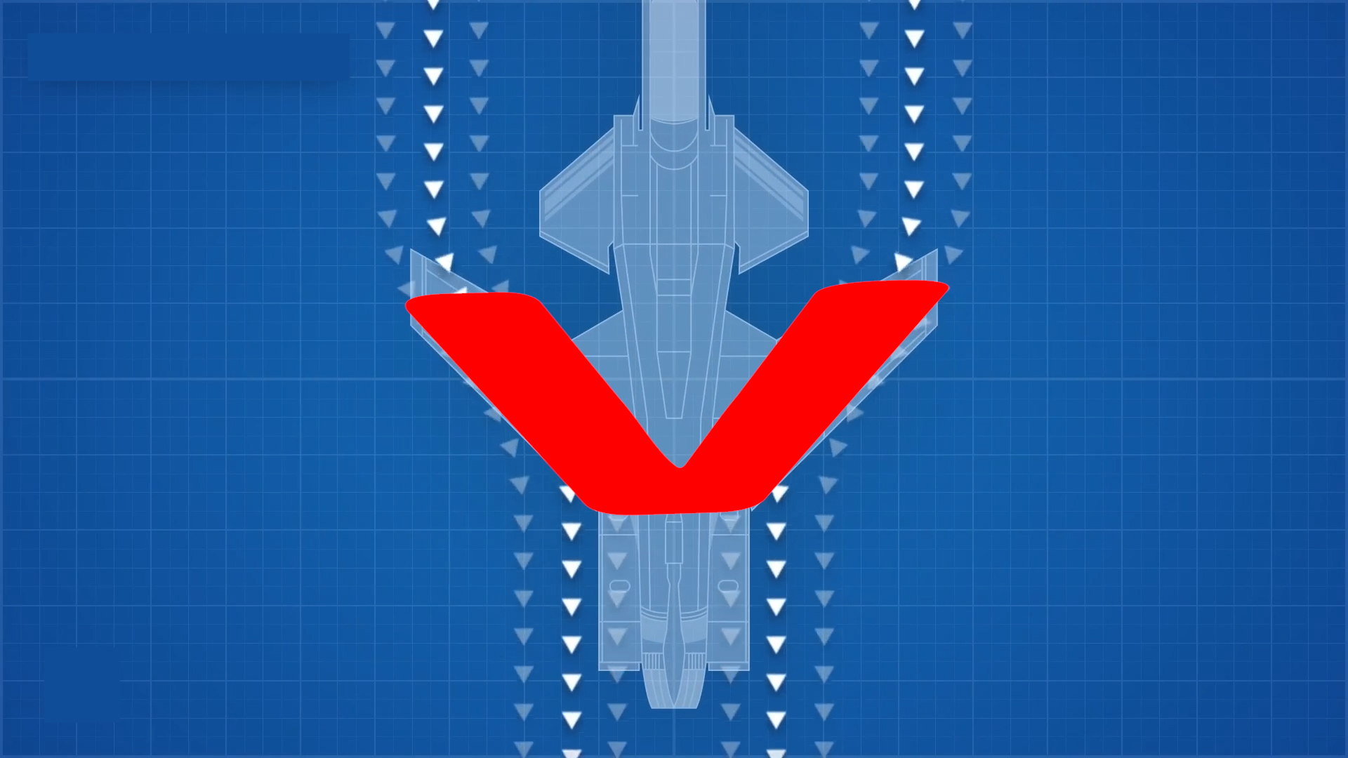 这是一种梢弦在根线的前面,左右翼俯视投影形成一个V字的飞机,这种设计能够推迟激波的产生,从而减少飞行中的阻力。