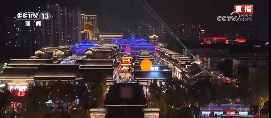 从空中视角来看,邯郸道历史文化街区位于邯郸市的中心城区,占据了城市“C”位。全长1.8公里的邯郸道历史文化街区灯火璀璨,古风灯笼与成语灯帘交相辉映,营造出浓厚的节日氛围。邯郸道历史文化街区是邯郸市重点打造的文旅新地标,今年1月份正式开街以来,一直是当地的热门旅游打卡地。这个国庆假期,街区内多个沉浸式文化场景集中开放。