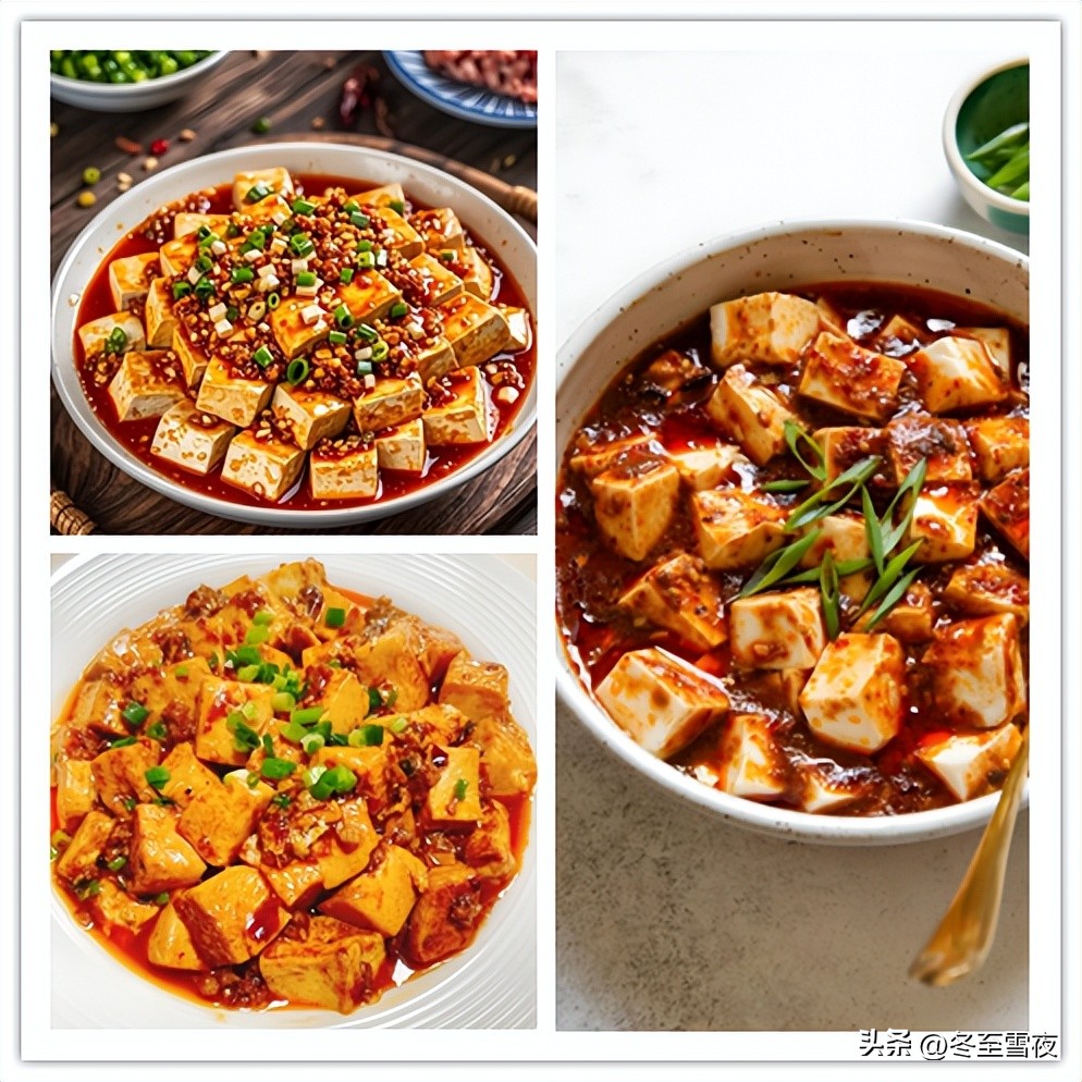 麻婆豆腐是川菜"麻辣"特色的代表,在海外享有盛誉。其特点是色泽红亮,麻、辣、烫、咸、鲜、酥、嫩,豆腐形态完整。