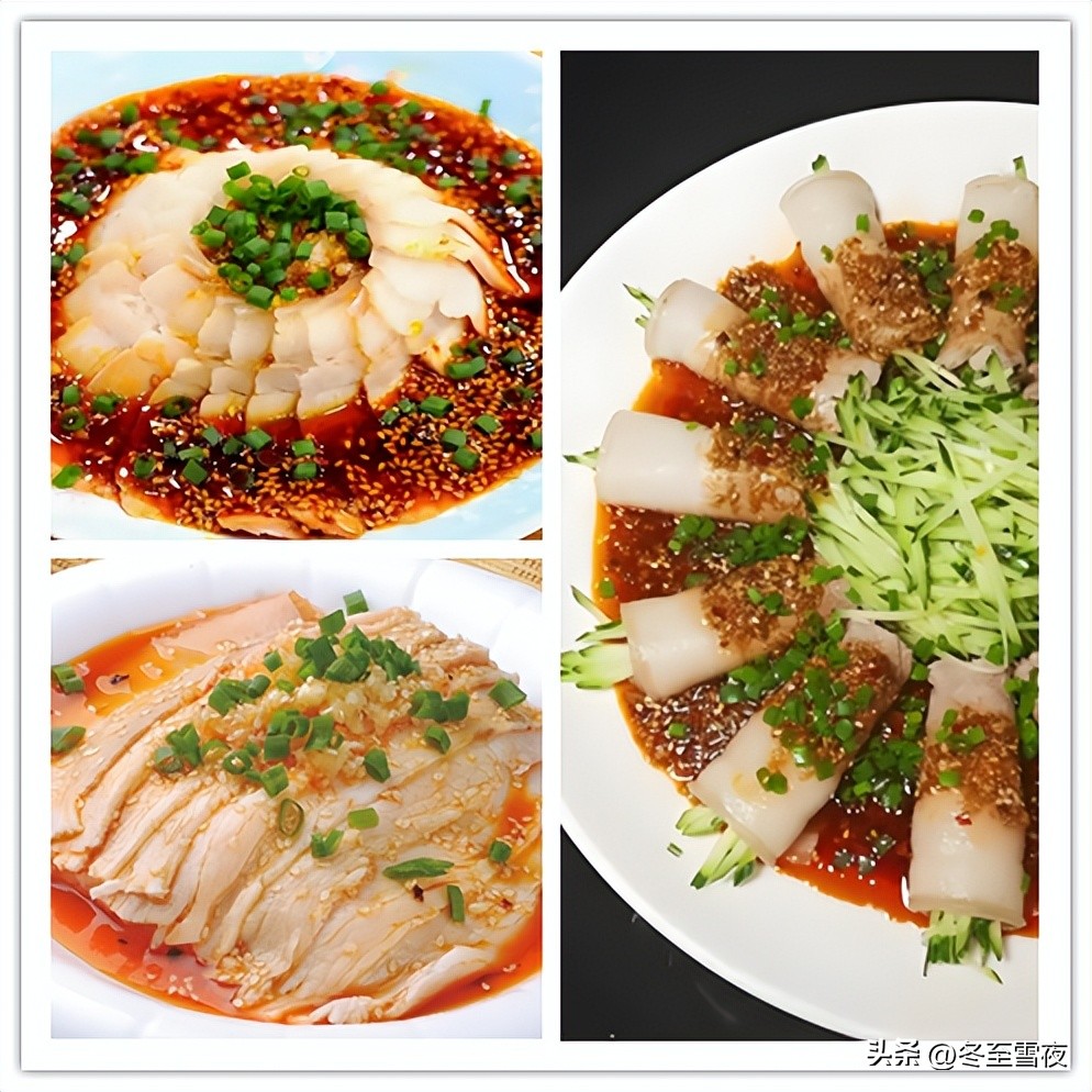 正宗的蒜泥白肉选用五花肉,切成薄片,再调一个蒜泥辣椒汁,将调好的佐料倒在五花肉上。蒜香的浓郁与猪肉的鲜美相得益彰,肥而不腻,开胃爽口。
