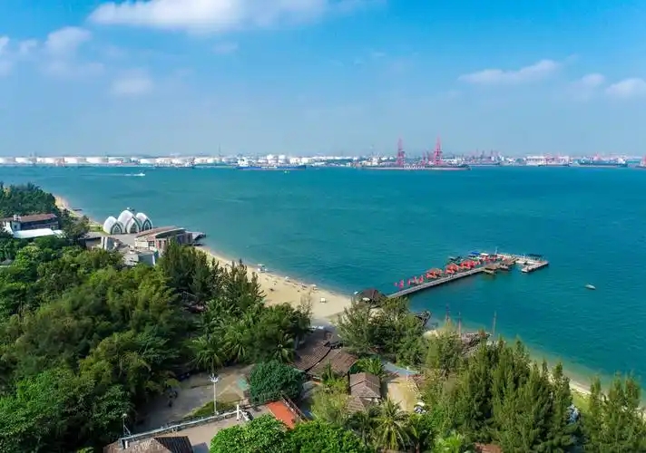 8、东海岛。位于湛江市麻章区东简镇。该岛面积约400多平方公里,拥有一条约28公里长的中国第一长滩,可与意大利的黄金海滩相媲美,岛上唯一的山岭龙水岭,岛上的最高峰像一个龙头一样。这里赶海、挖螺蛳,抓螃蟹,可以遇到最美的夕阳。