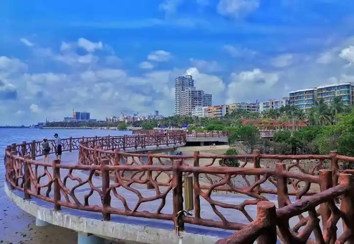 5、湛江观海长廊。海滨城市景观,位于湛江市赤坎区东部海滨,全长约2.5千米,根据其地形现状分为南中北三个区,南区峡长,以紫荆广场居中;中区地形宽广,分东西两面,有园路通绕,整体以草地为主,北区以海螺广场为主,种植不同的棕榈植物。