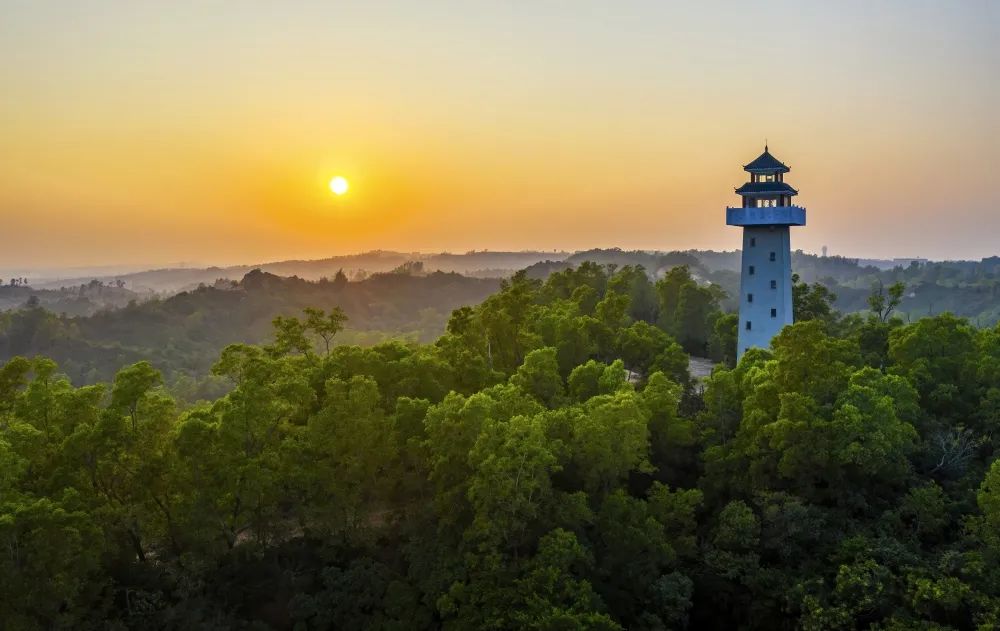10、三岭山。湛江“市肺”。位于湛江市霞山区西南郊3千米。有三座山岭相连而得名,最高峰海拔140余,在顶峰可以看到全市全景和湛江海湾景观。这里依山环水,湖光山色,大小不一的山岭延绵起伏,山沟峡谷形态各异,树木茂密,鸟语花香,是一个旅游休闲度假运动的生态郊野公园。