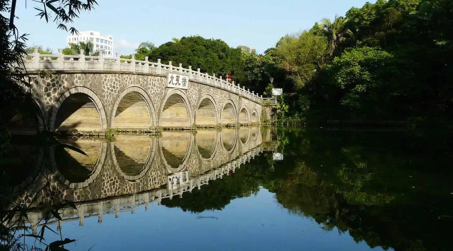 4、寸金桥公园。湛江最大的亚热带园林公园,位于湛江市赤坎区南方路。寸金桥桥名含中华国土寸土寸金,不容外敌侵占之意,以纪念1898年当地人民的抗法斗争。桥西头竖一纪念碑,记抗法斗争事迹始末。两侧为寸金桥公园,公园建于1958年,抗法英雄塑像庄严的屹立在公园大门宽敞的广场上,体现了湛江人民的英雄形象。