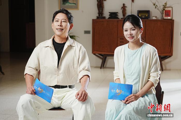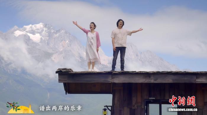 两岸夫妻音乐人游纯瑜(左)与谢学飞(右)在民歌大观献唱原创歌曲《两岸一家亲》。 视频截图