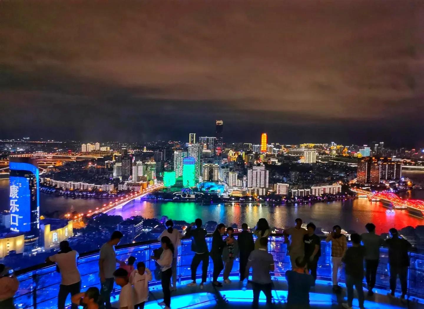 玩法:傍晚5点半前上山,楼梯约40分钟,电梯更快;观景台拍“柳州蓝”日落;夜景灯光亮起后(19:30)人群最多,建议错峰。