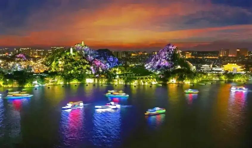 玩法:推荐夜游柳江,欣赏亚洲最大音乐喷泉和世界最长人工瀑布。可乘坐游船全方位感受柳江夜景魅力。江风较大,建议带件外套。