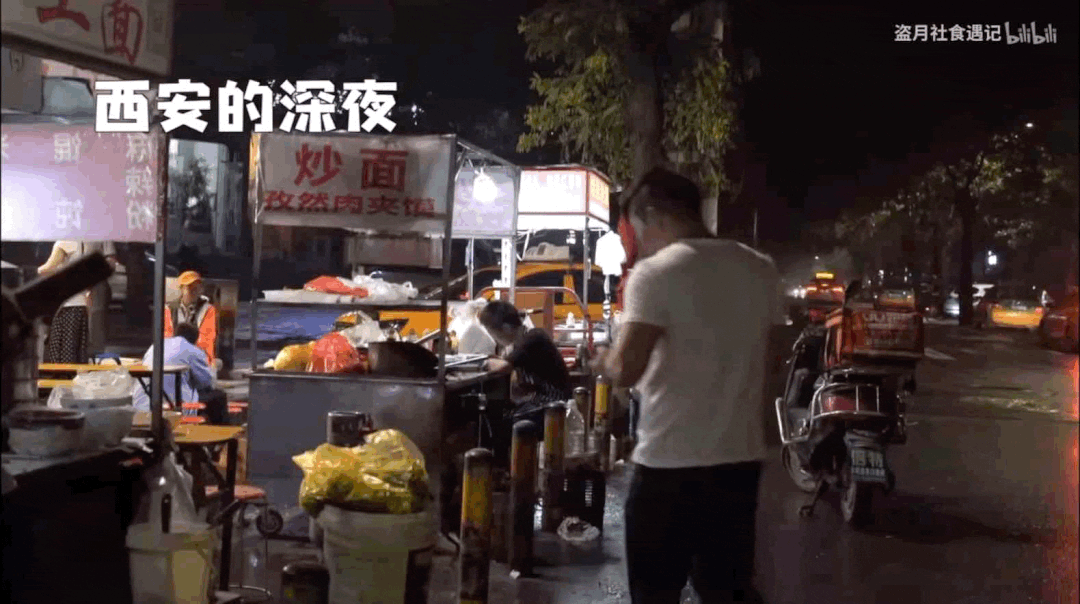 在西安,更多的地道夜宵就藏在大街小巷的夜市里,B站UP主盗月社食遇记,就被街头偶遇的西安大哥“安排”,在碑林区东关南街的夜市,感受了西安人的热情。大面筋上撒满花椒与麻椒,菠菜面令人直呼“美滴很”,正是这座西北与中原交界的美食之都,满满“碳水狂魔”的魅力。