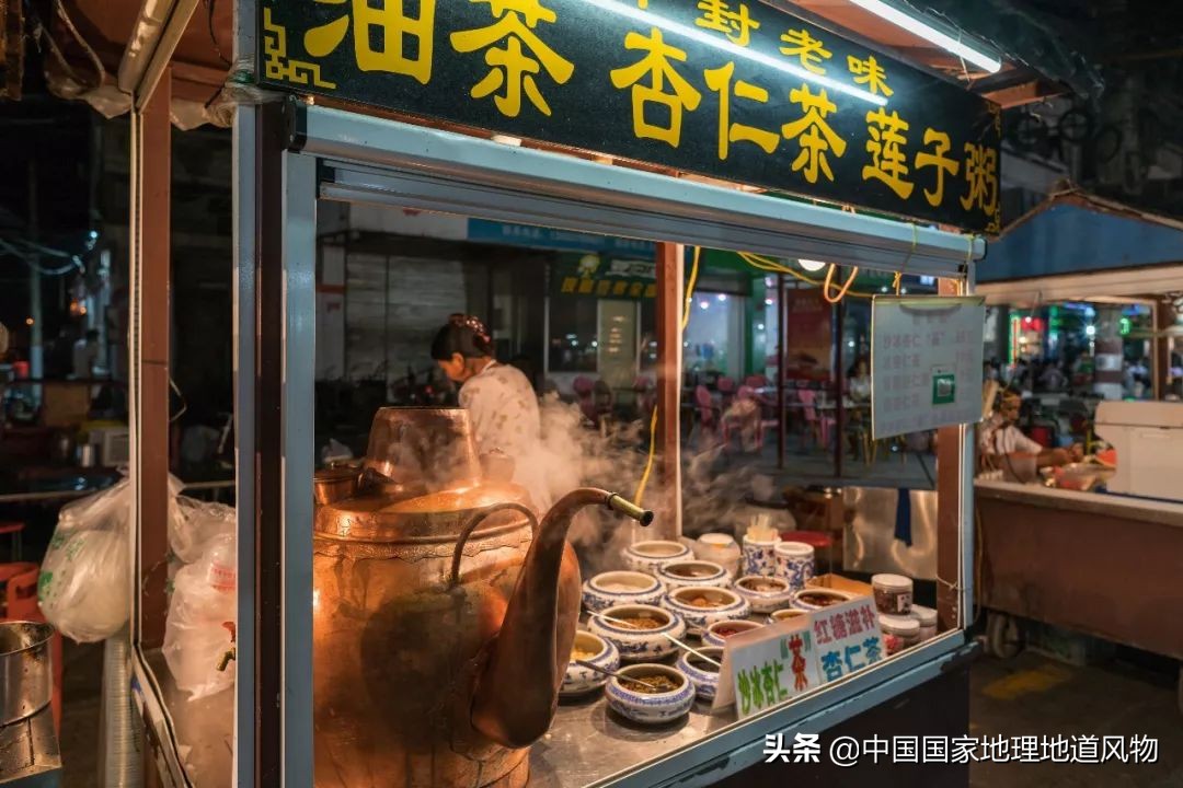 “天上星,头顶灯,身边灶炉,四周人声。”繁华的鼓楼夜市、市井的西司夜市,以及最为朴实的河大西门夜市,是开封人入夜后的最佳去处;四味菜、羊肉炕馍、羊肉汤、双麻烧饼,是开封夜市的民族风情;麻辣花生、炒凉粉、花生糕、红薯泥,一道道简单便携的小吃,点亮了开封人的宵夜之路,而那一壶龙凤铜制大壶装置的宫廷杏仁茶,正是开封宵夜“C”位,仿若令人想起大宋的千年风华。