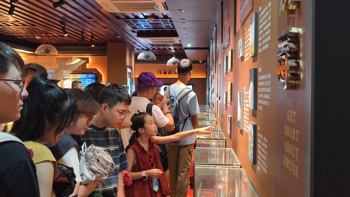 在林则徐的生平事迹展,展现了林则徐的出生、家族世系和国人熟知的“虎门销烟”的故事。不少游客驻足在模拟沙盘边,通过馆内的光影和声音,仿佛就能听到林则徐当年坚定地说出“销烟”二字。而林则徐曾经为近代中国上下求索的经历,也在展览馆中有所展现。