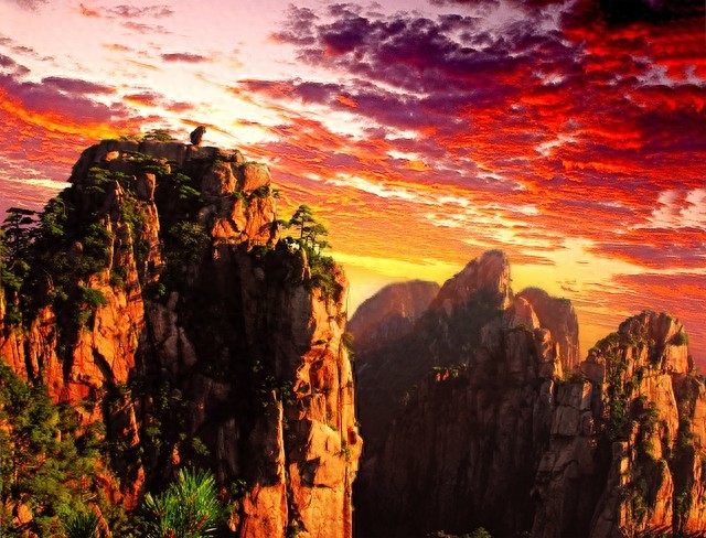 1、黄山(安徽省):以奇松、怪石、云海、温泉、冬雪"五绝"著称。有"五岳归来不看山,黄山归来不看岳"之美誉。黄山是世界文化与自然双重遗产,拥有莲花峰、光明顶、天都峰三大主峰。
