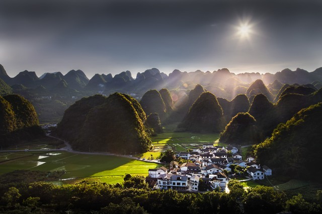44、万峰林(贵州省):世界地质公园,中国最大、最典型的喀斯特峰林,万千峰林如笋立,景色壮观。