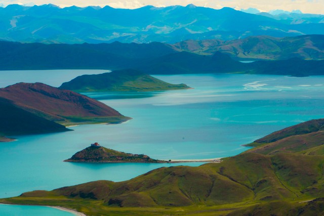 22、羊卓雍措(西藏自治区):西藏三大圣湖之一,湖水呈现不可思议的碧蓝色,被誉为"天上的仙境"。