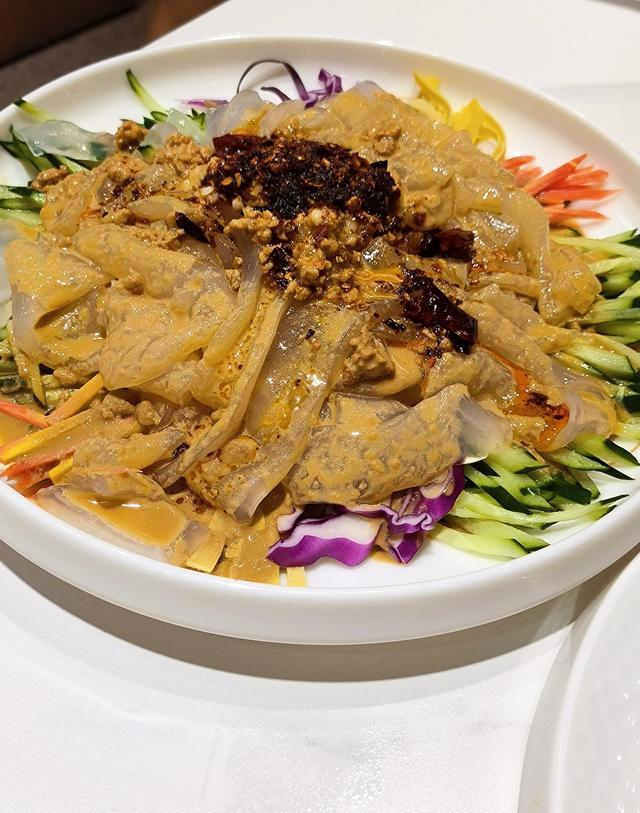 河南街凌晨一点,炭火还红,“老白家”把煎粉切块后先“蒸桑拿”——蒸汽3分钟,粉块表面糊化,再下平底锅,外脆里糯,麻酱里掺一勺花生碎,香得隔壁卖烤鱿鱼的都过来蹭酱。