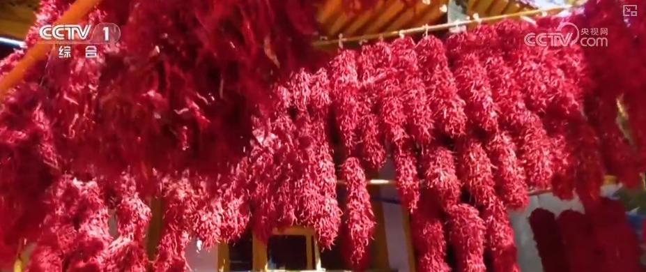 火红的辣椒构成了秋日里的另一番景色。这两天,青海海东循化县的2.5万亩线辣椒迎来第二茬采摘季。家家户户房前屋后,都晾晒着一串串红彤彤的辣椒,构成一幅火红的秋日丰收图景。