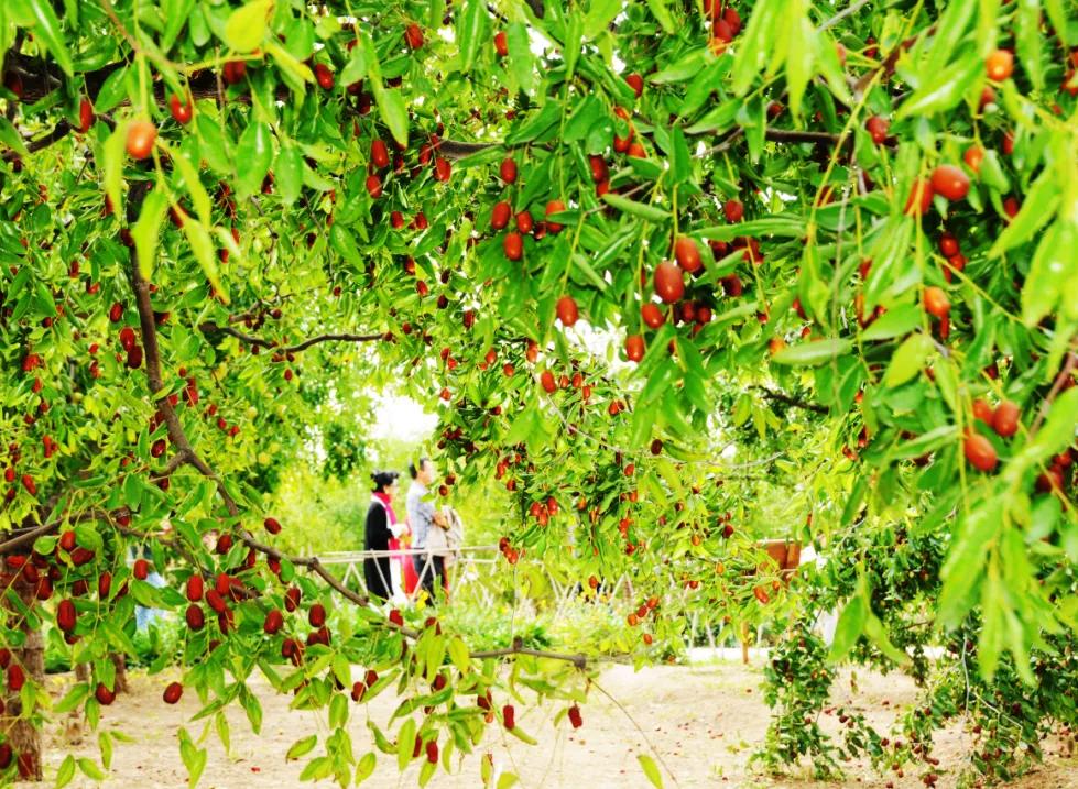 漫步枣林,呼吸着饱含负氧离子的清新空气,触摸着千年古枣树粗糙而沧桑的树皮,聆听着乾隆赐名的传奇故事,品尝着脆甜可口的金丝小枣,惬意之感油然而生。