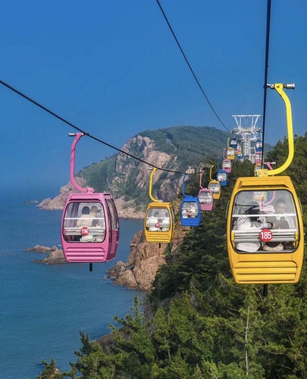 跟着索道升到最高处,海风灌满车厢,索道钢缆的轻吟与海浪合唱,仿佛整个人都成了山海之间的琴弦。