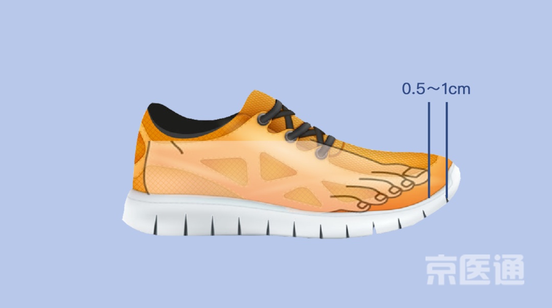 脚趾前留出的空间基本在0.5-1cm左右,预留出足够的空间让脚趾有充分的空间活动,鞋的尺寸要以最长的脚趾(主要是二脚趾)的长度为主。