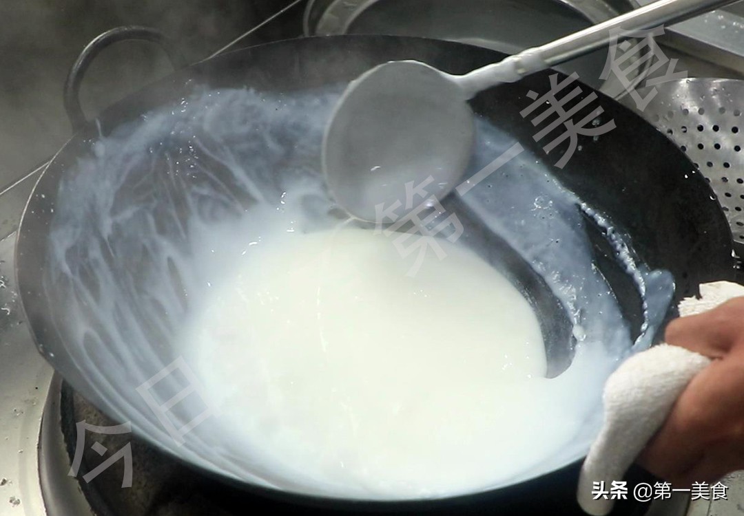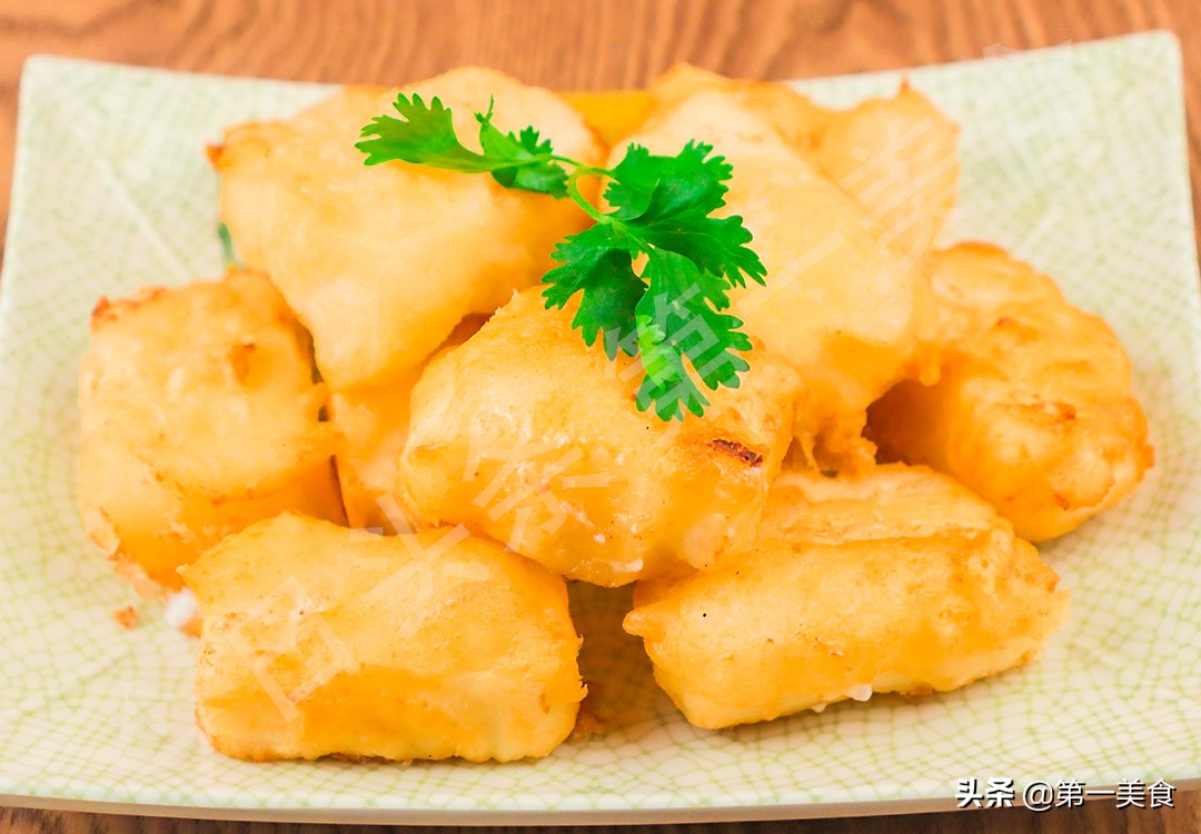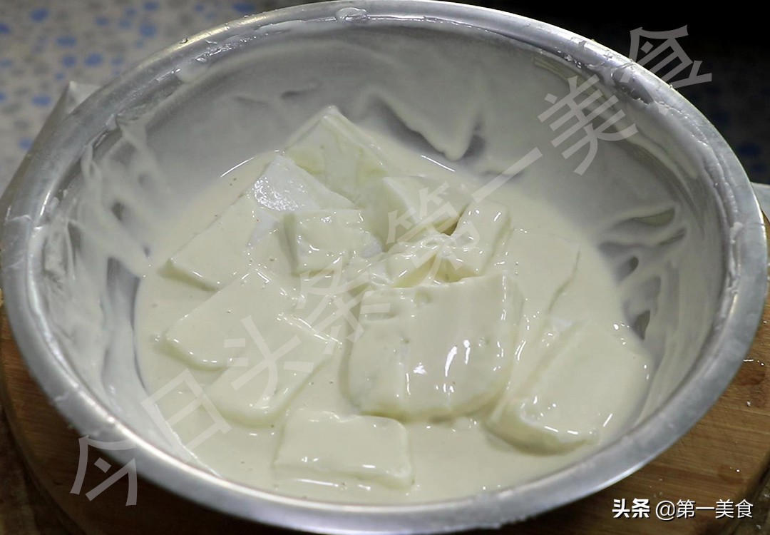 升高油温至6成热时转为小火,把鲜奶倒入锅中,快速复炸20秒钟倒出控油,经过复炸的鲜奶色泽金黄、口感焦酥,控干油摆放在盘中,一道外酥里软的炸酸奶就做好了。