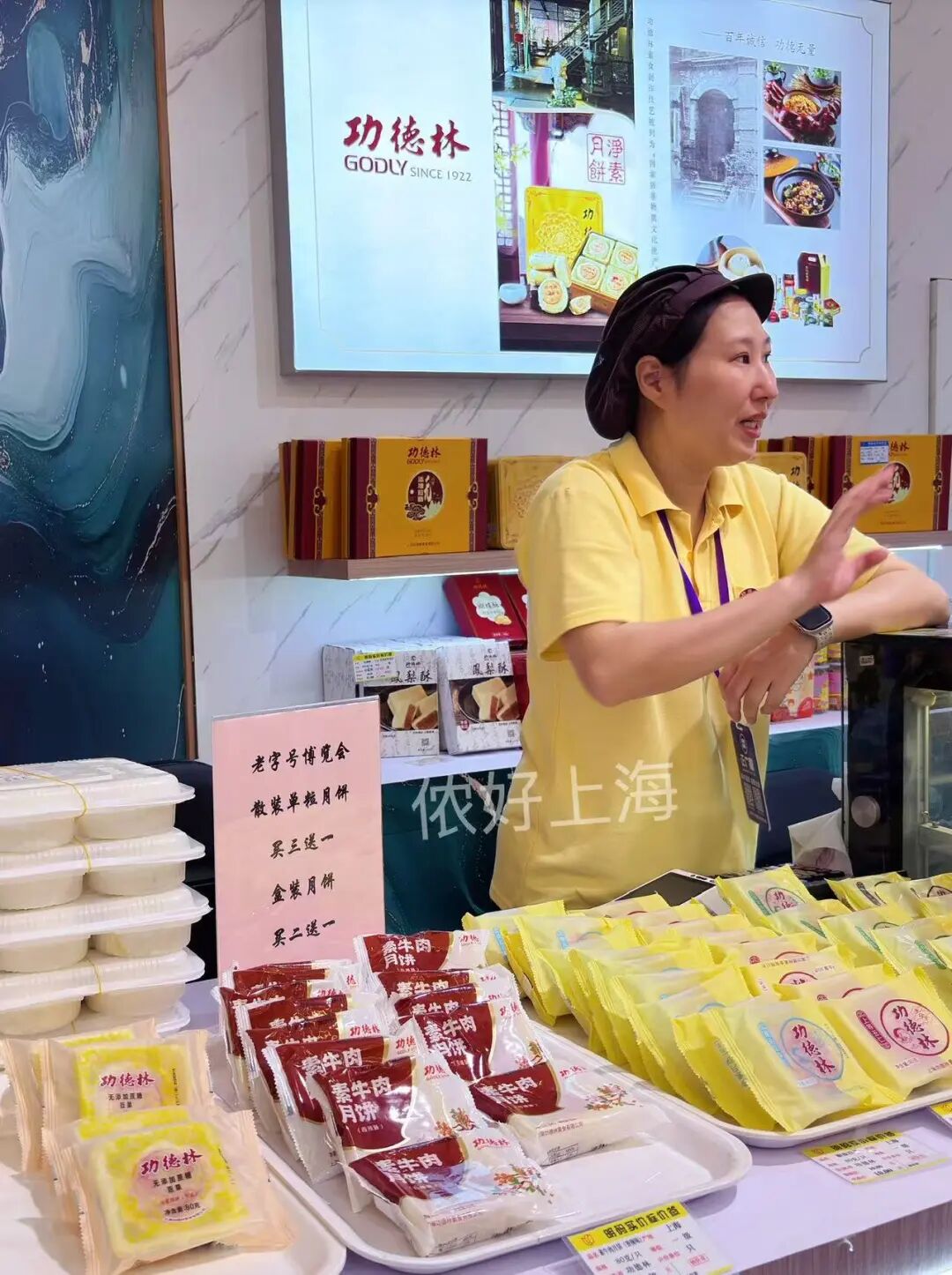 光明邨首次参展就放大招月饼现场烤制,酥皮一碰就掉渣,试吃队伍长!长!长!