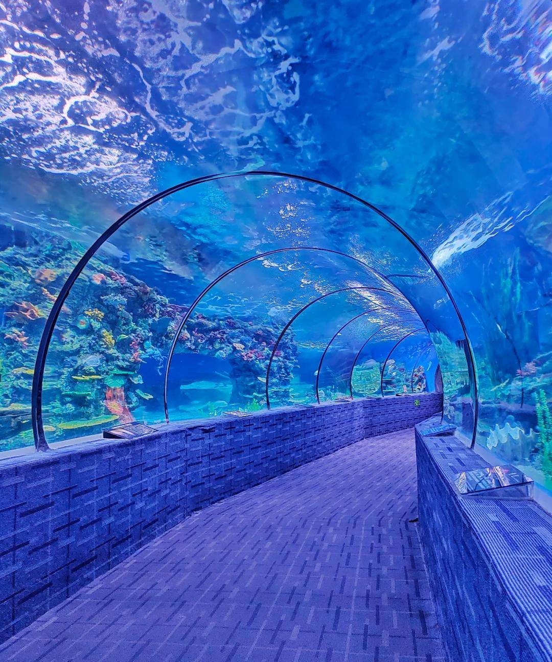 馆中陈列着多种多样的海洋生物以及珊瑚礁生态体系,使人仿佛身处海底世界。