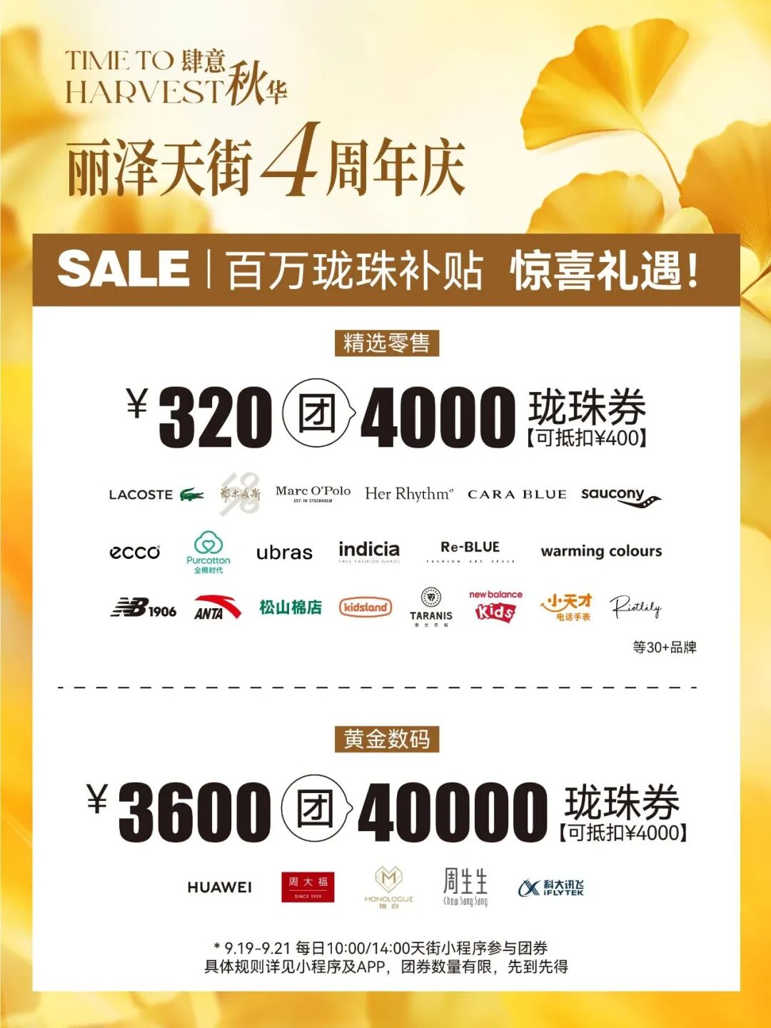 9月19日至21日整座商场变成巨大的惊喜盲盒百万珑珠补贴、百元秒杀品质双人餐品牌专属福利更有越南芽庄精品单人游让市民每一笔消费都更具性价比